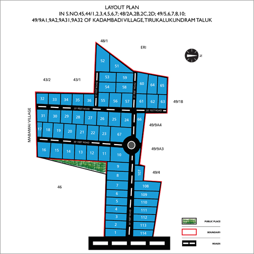 Kadambadi is surrounded by Chengalpattu Taluk towards North, Thiruporur Taluk towards East, Madurantakam Taluk towards west.